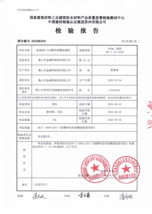 藍(lán)德堡N-206酸性硅酮玻璃膠