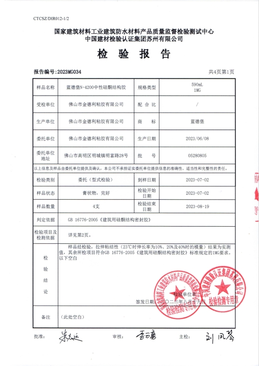 藍(lán)德堡N-4200中性硅酮結(jié)構(gòu)膠